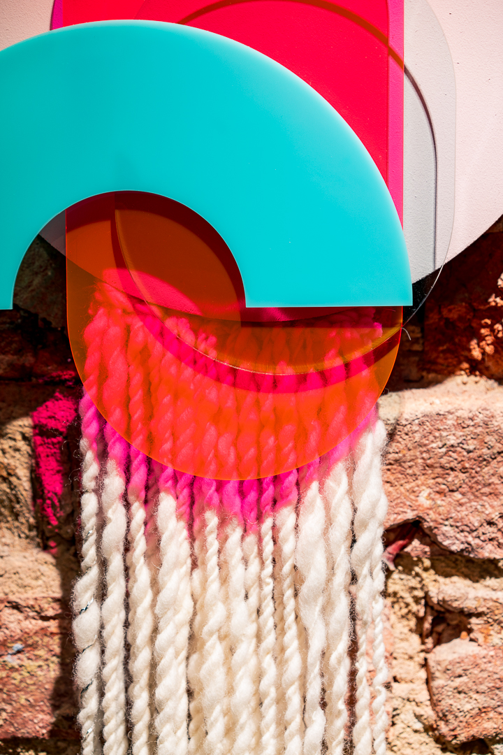 Drawing from Jean Dubuffet’s creative primitivism, off-cut wood, painted jute and a handspun yarn of self-harvest kapok cotton and merino wool were used to create these abstract forms which were composed in response to the flora and fauna of beautiful Southern France.